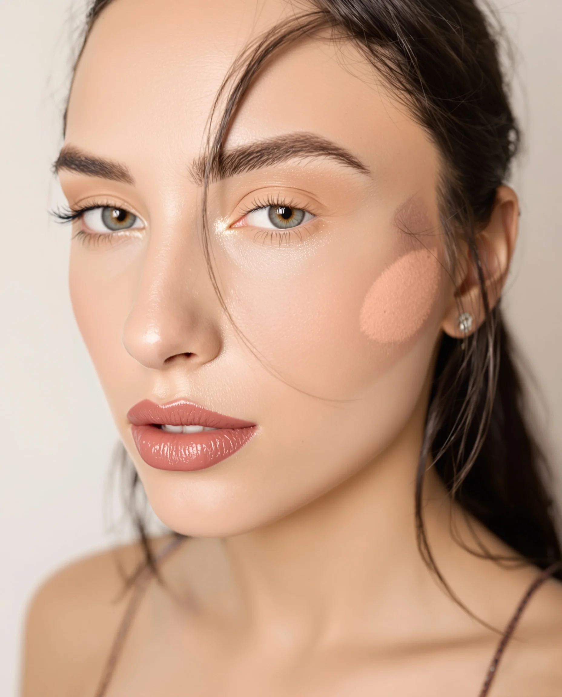 Romantik yumuşak pembe tonlarla doğal parlayan cilt