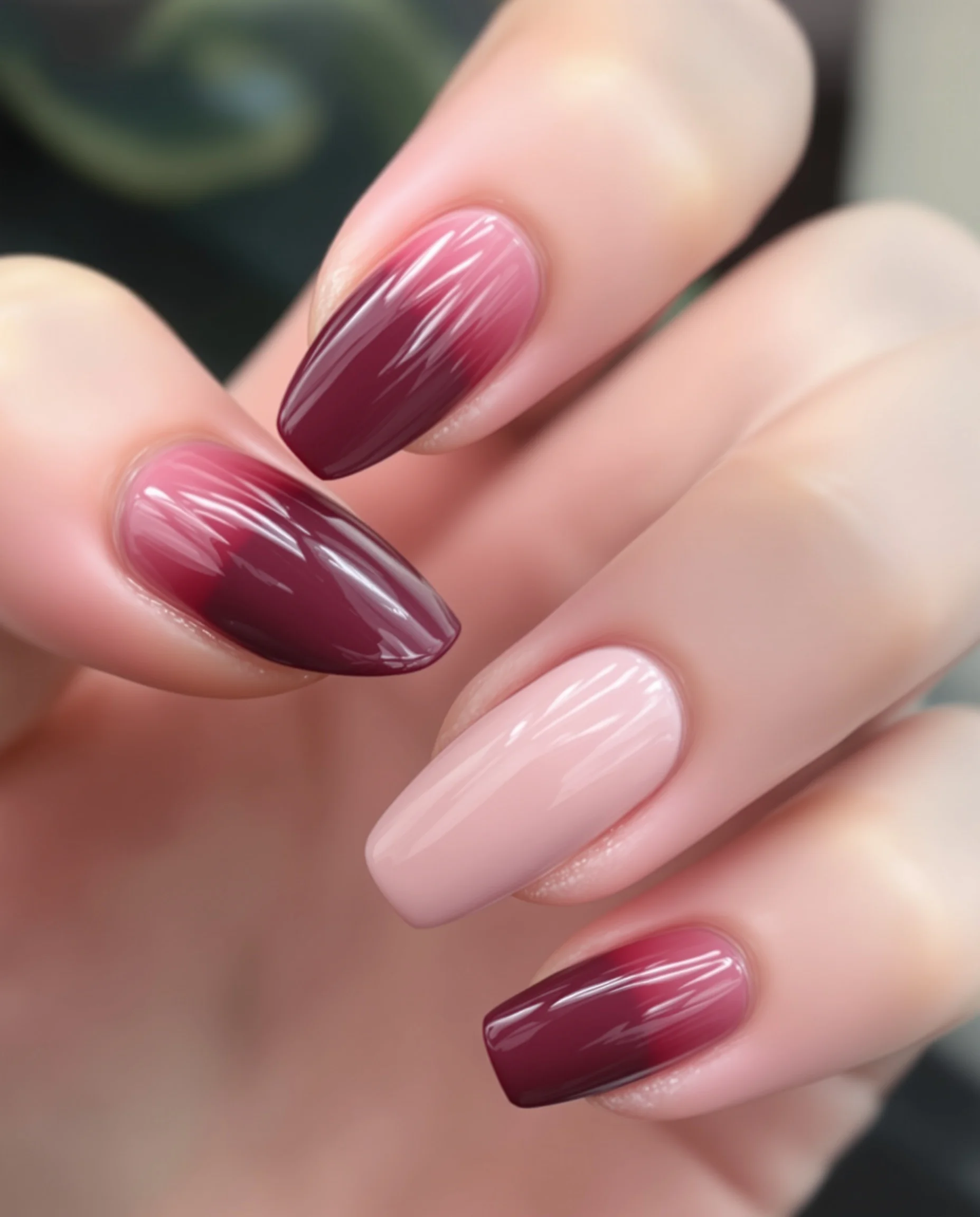 Nude tondan bordo renge geçişli tasarım