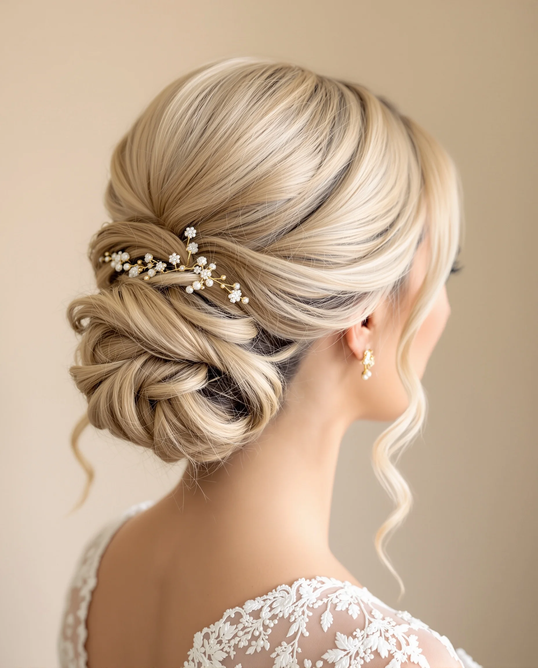 İnci aksesuarlı romantik gelin topuzu
